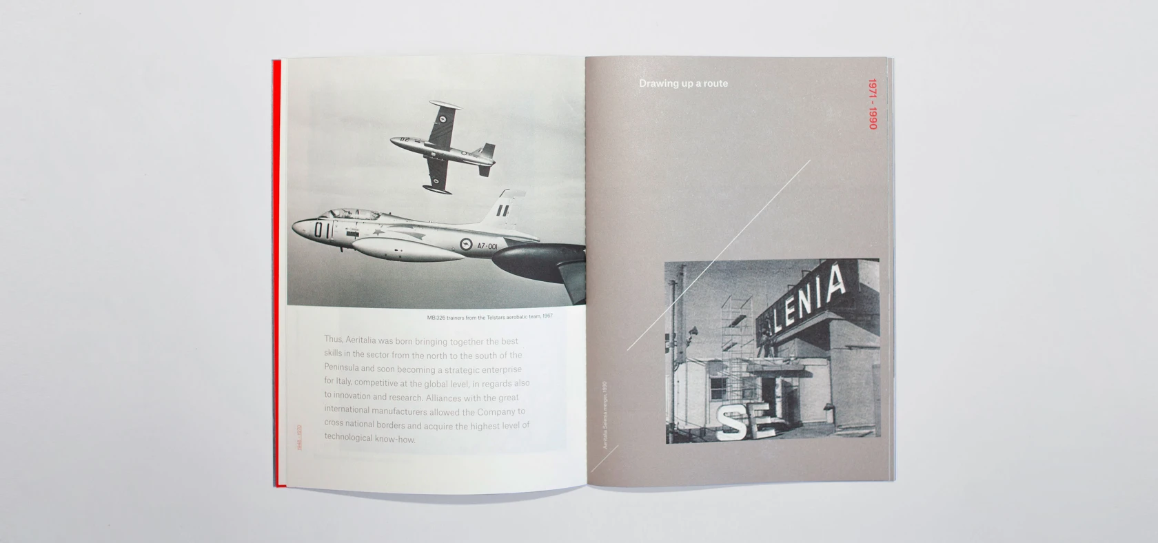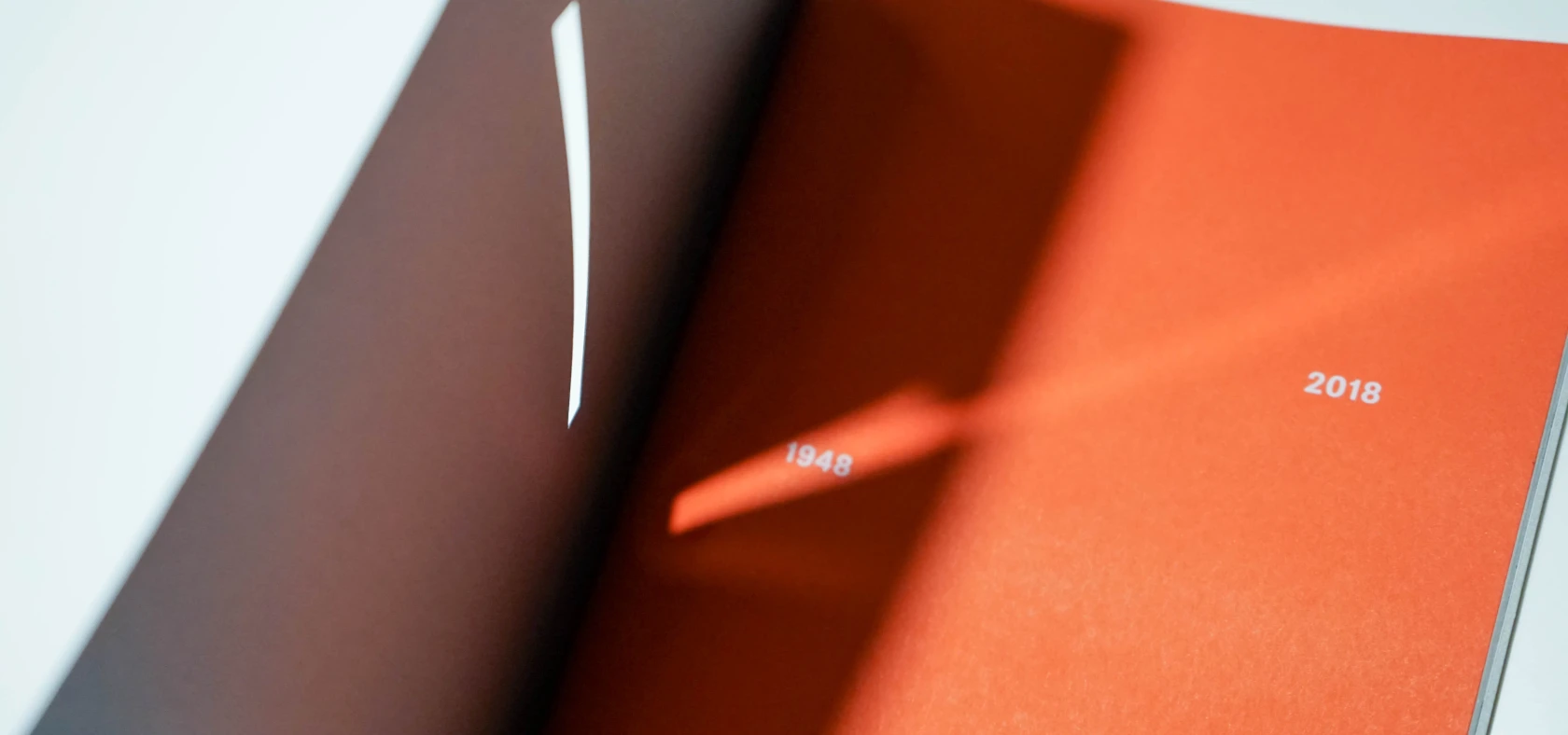 A story that tells important moments of the company: changes, evolutions and records. Starting from the cover of the brochure, where the cut represents the transition and the union of year 1948 with year 2018: a continuity in constant rise, driving forward.
