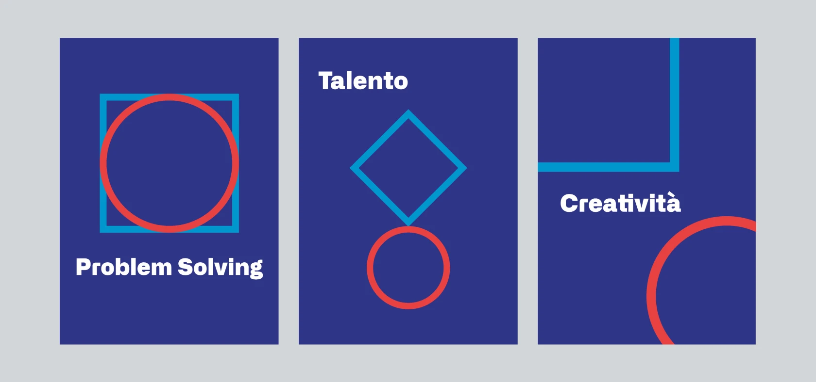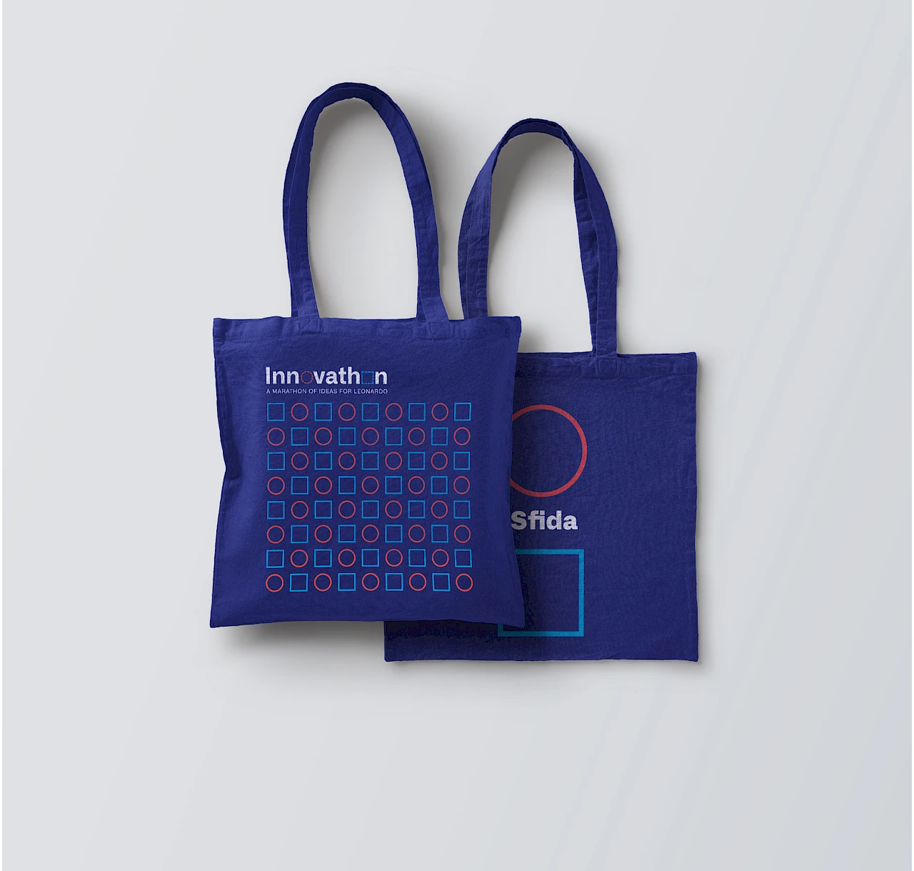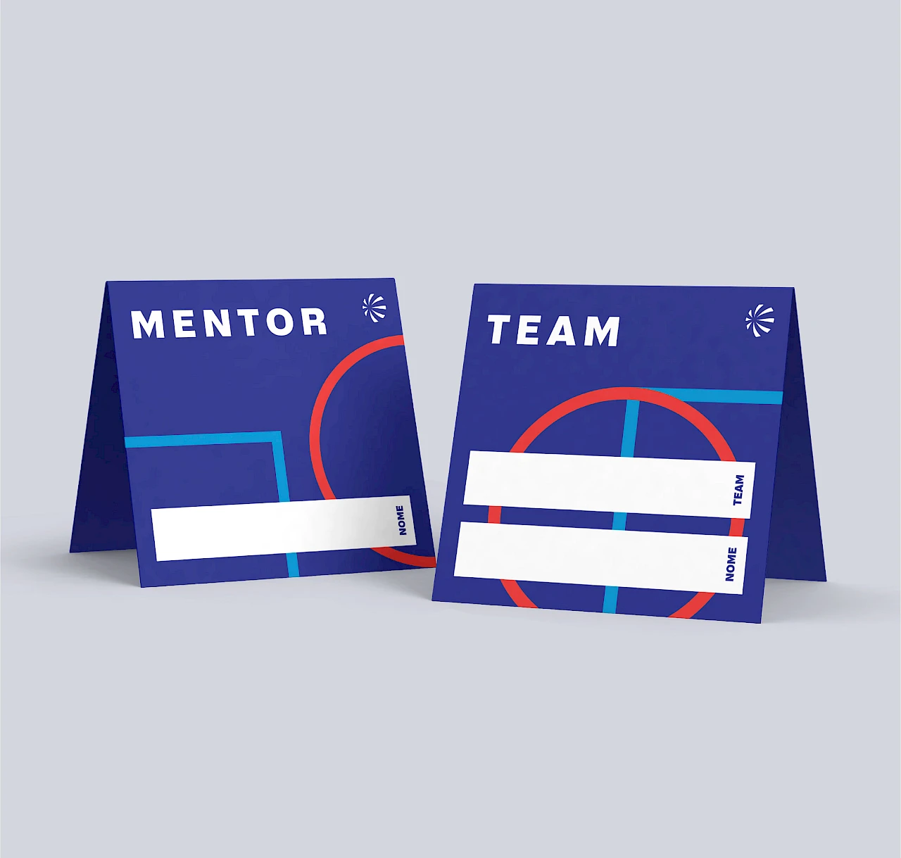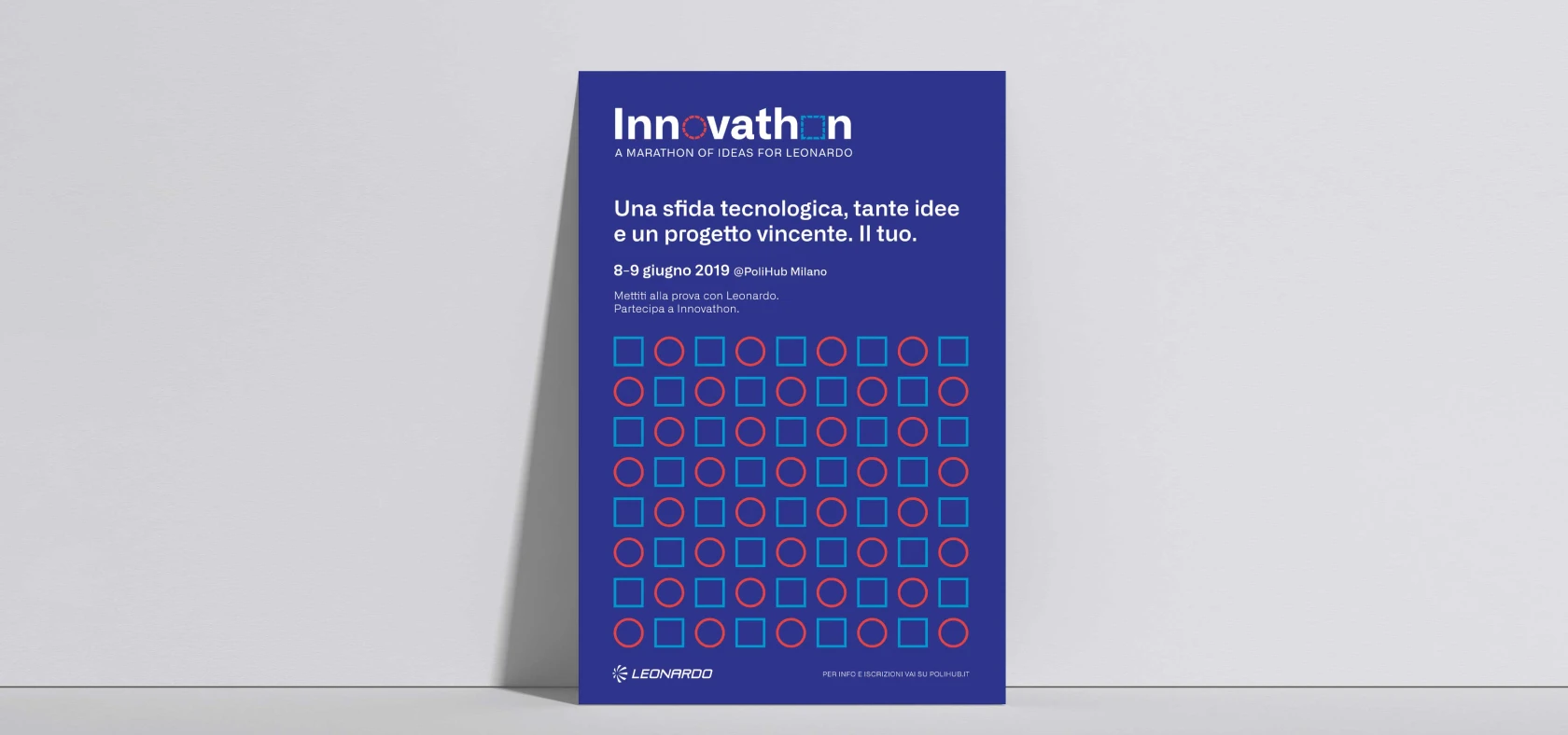 The two shapes, conceived as key elements of the logo, are also used together in the communication assets to represent the values of Innovathon and the skills of the hackathon’s champion.