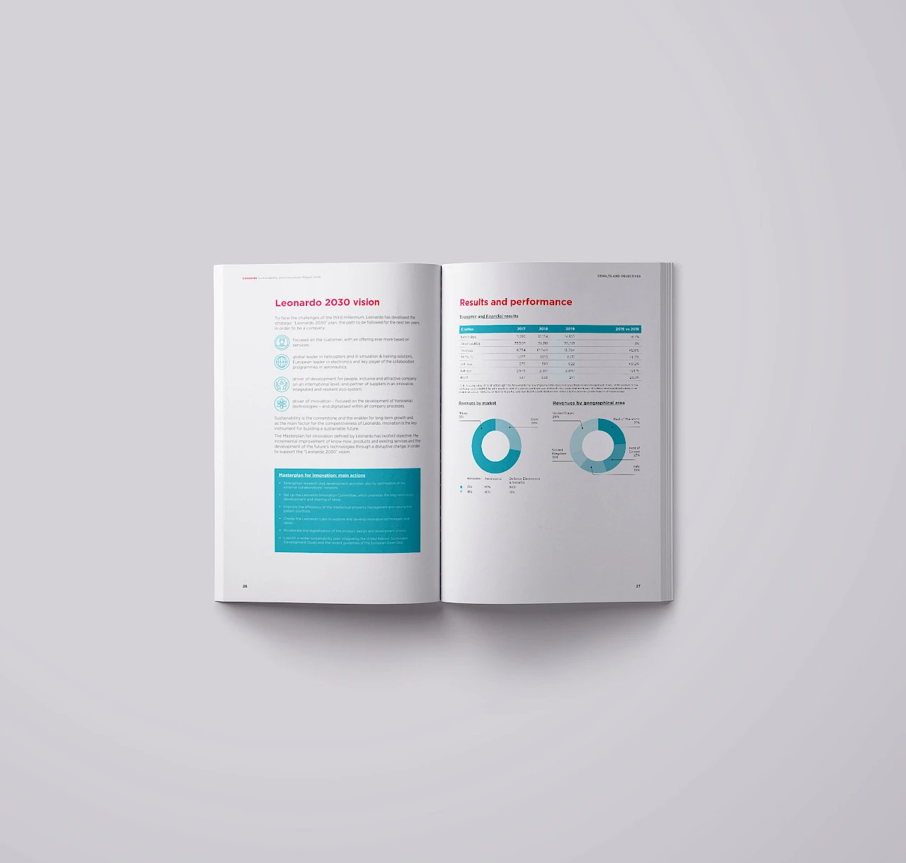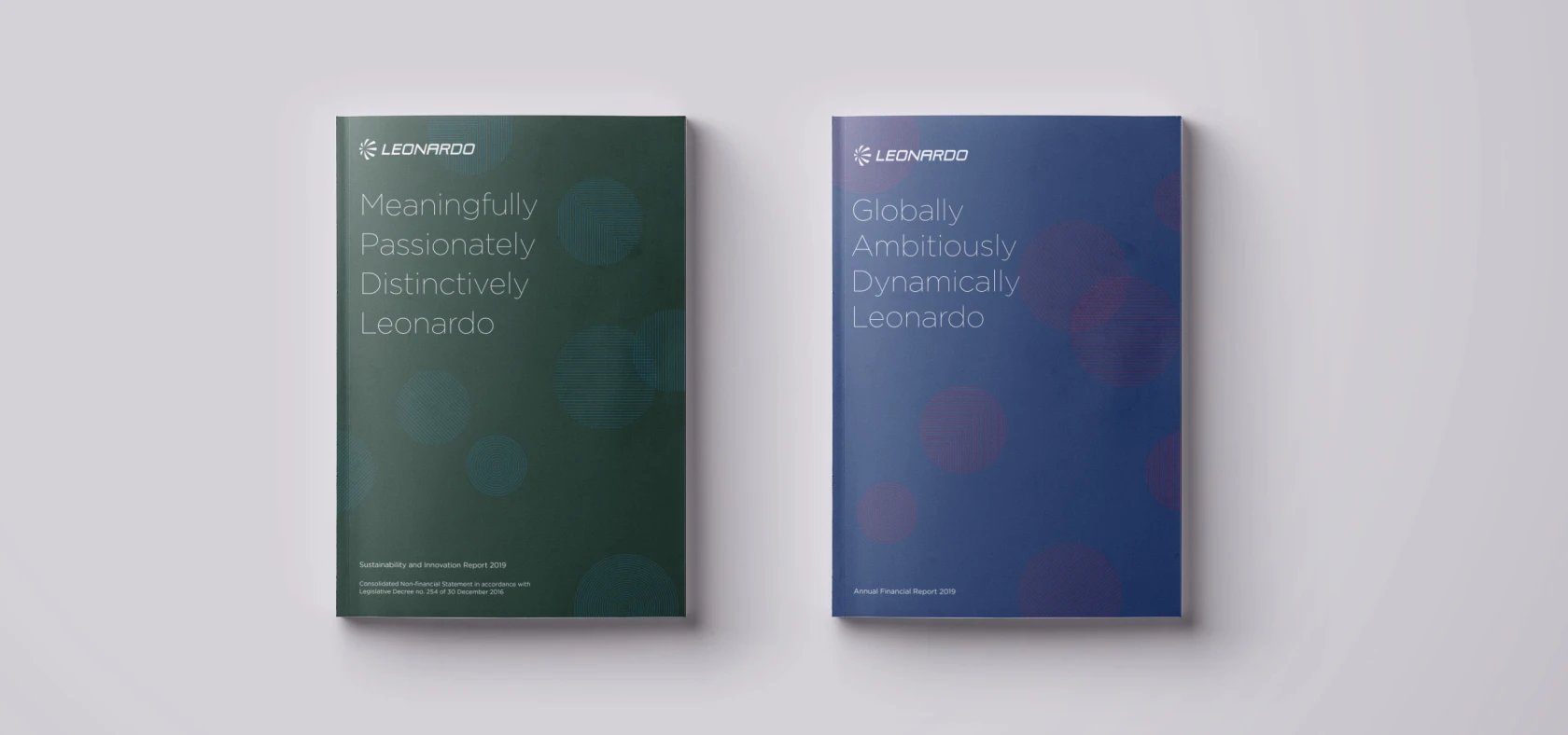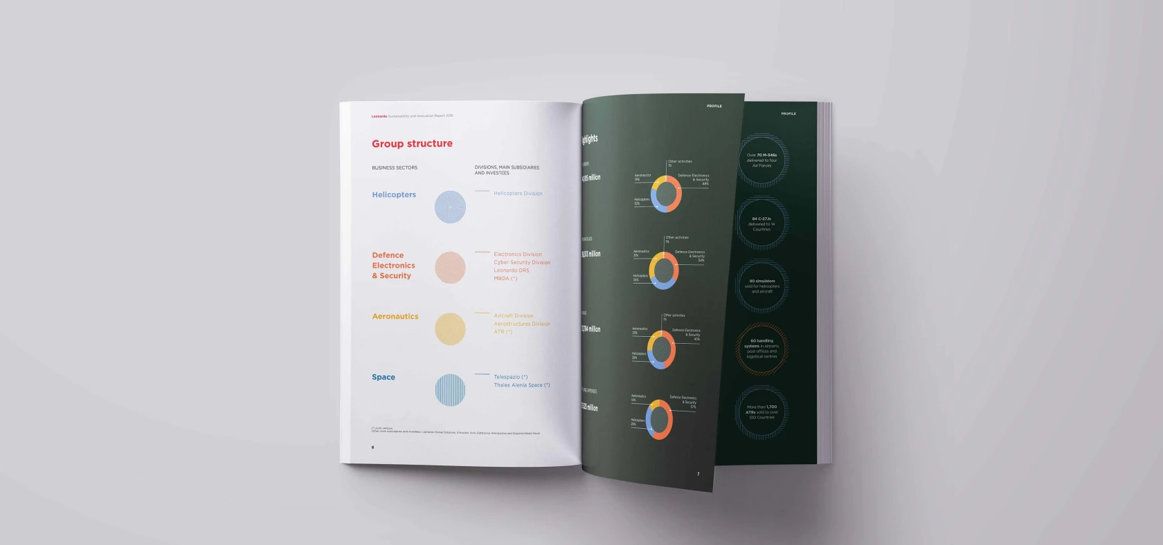 Also this year we developed the concept and designed Leonardo's Annual Report. We have chosen to highlight the most human values of the Company, narrating its Mission and Vision through its most distinctive characteristics.