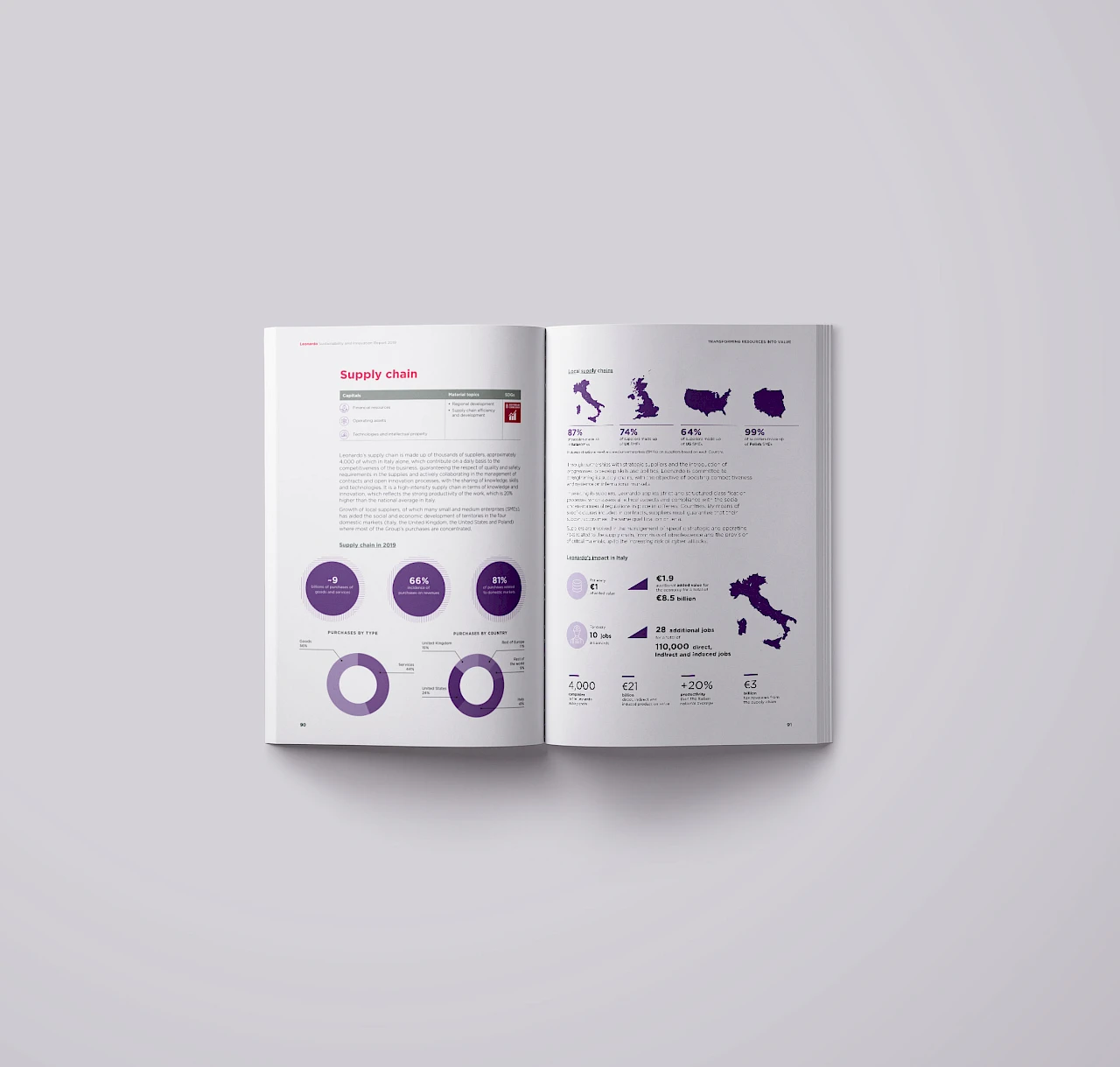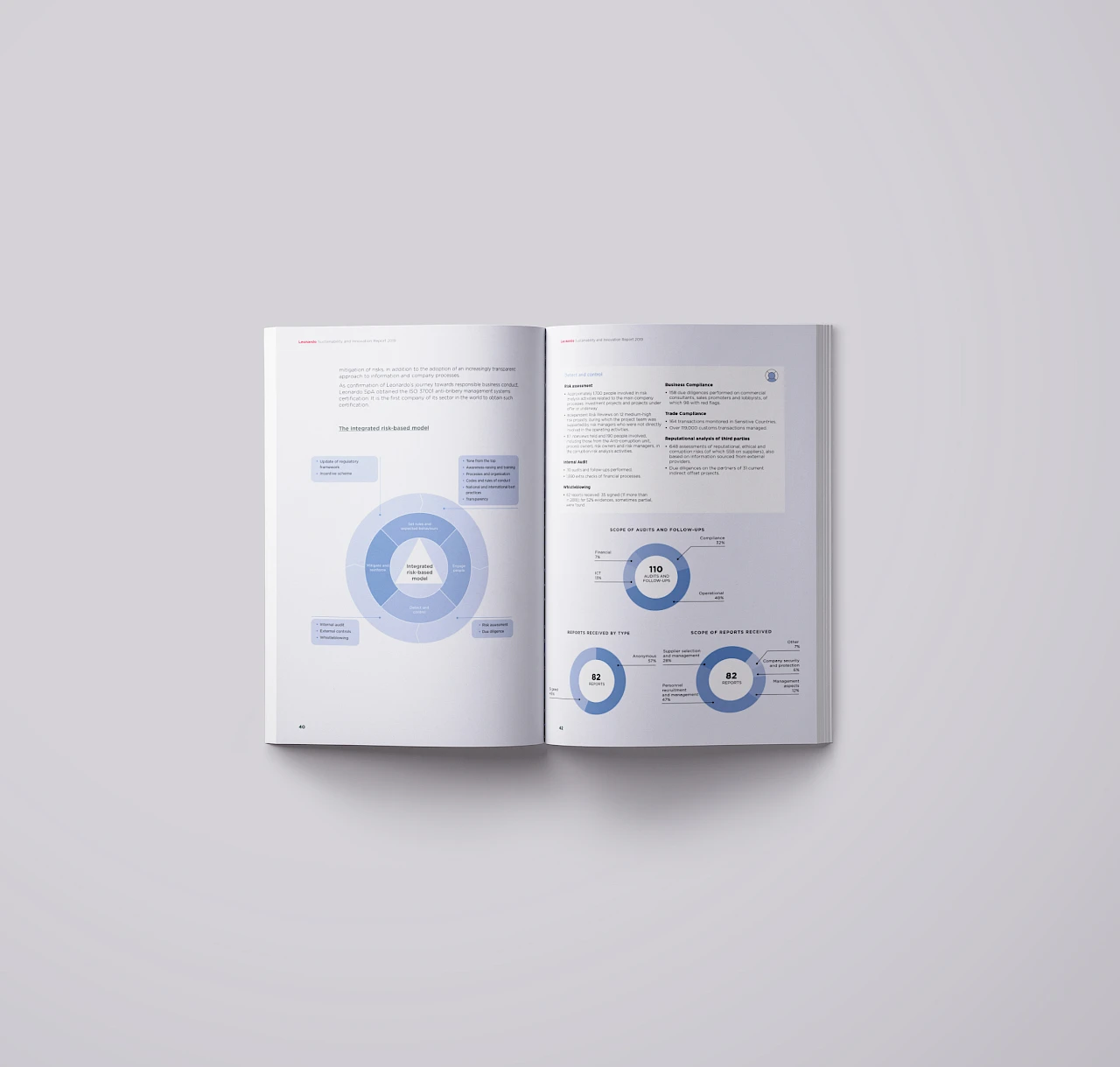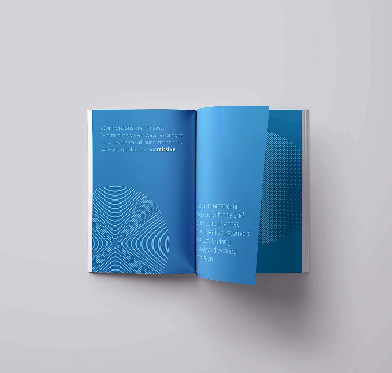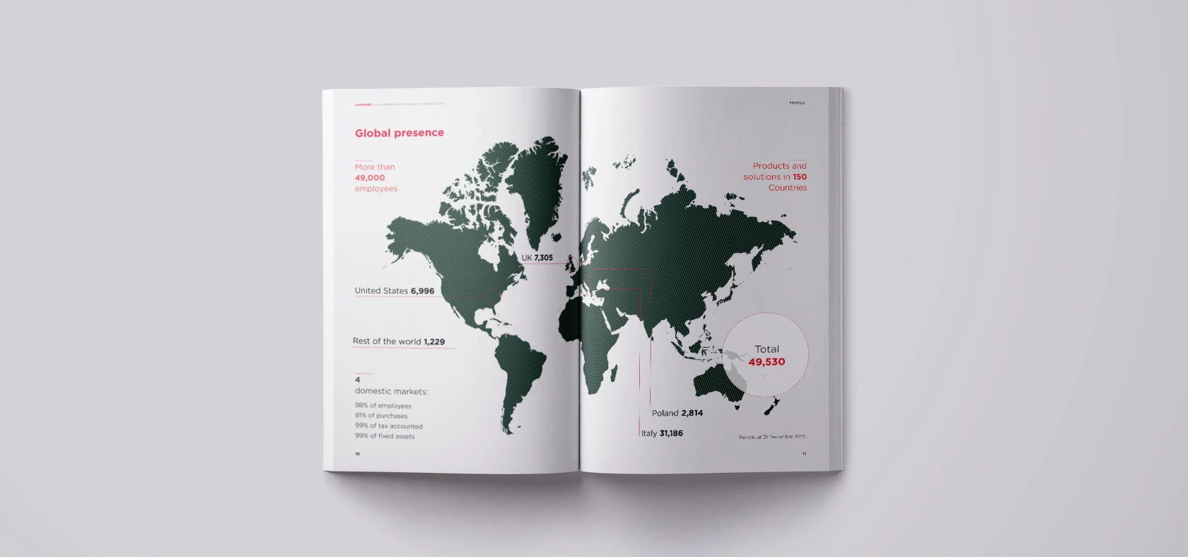 Also this year we developed the concept and designed Leonardo's Annual Report. We have chosen to highlight the most human values of the Company, narrating its Mission and Vision through its most distinctive characteristics.