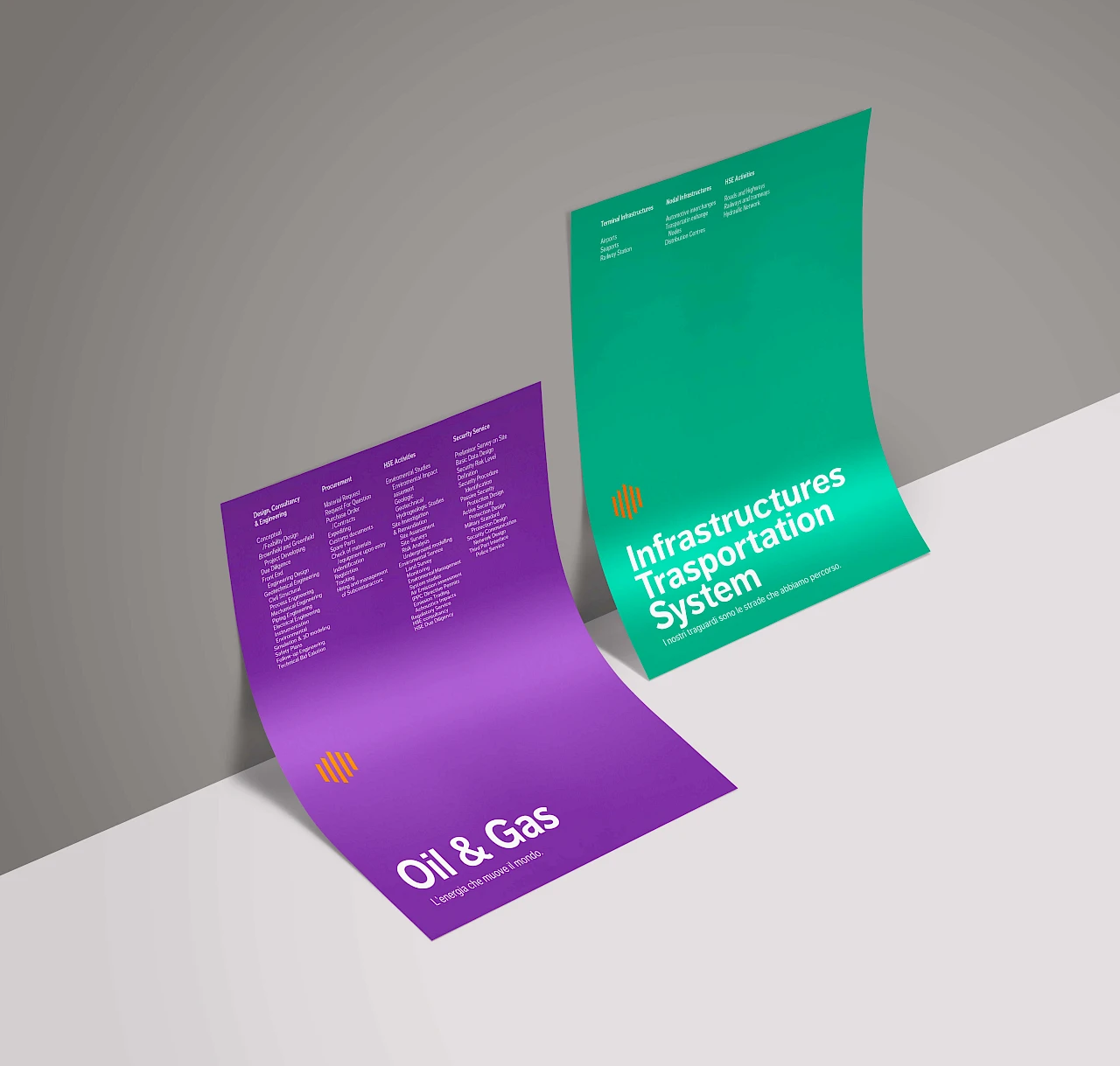From Brand Architecture to the whole visual identity, we have structured a consistent graphic system, reporting its distinctive features both on tools such as the company profile and the corporate portfolio, and on the web. We wanted to maintain a dynamic approach, however capable of giving a sense of stability and security.