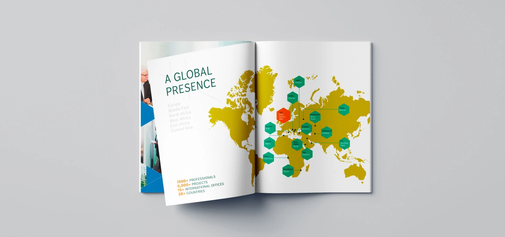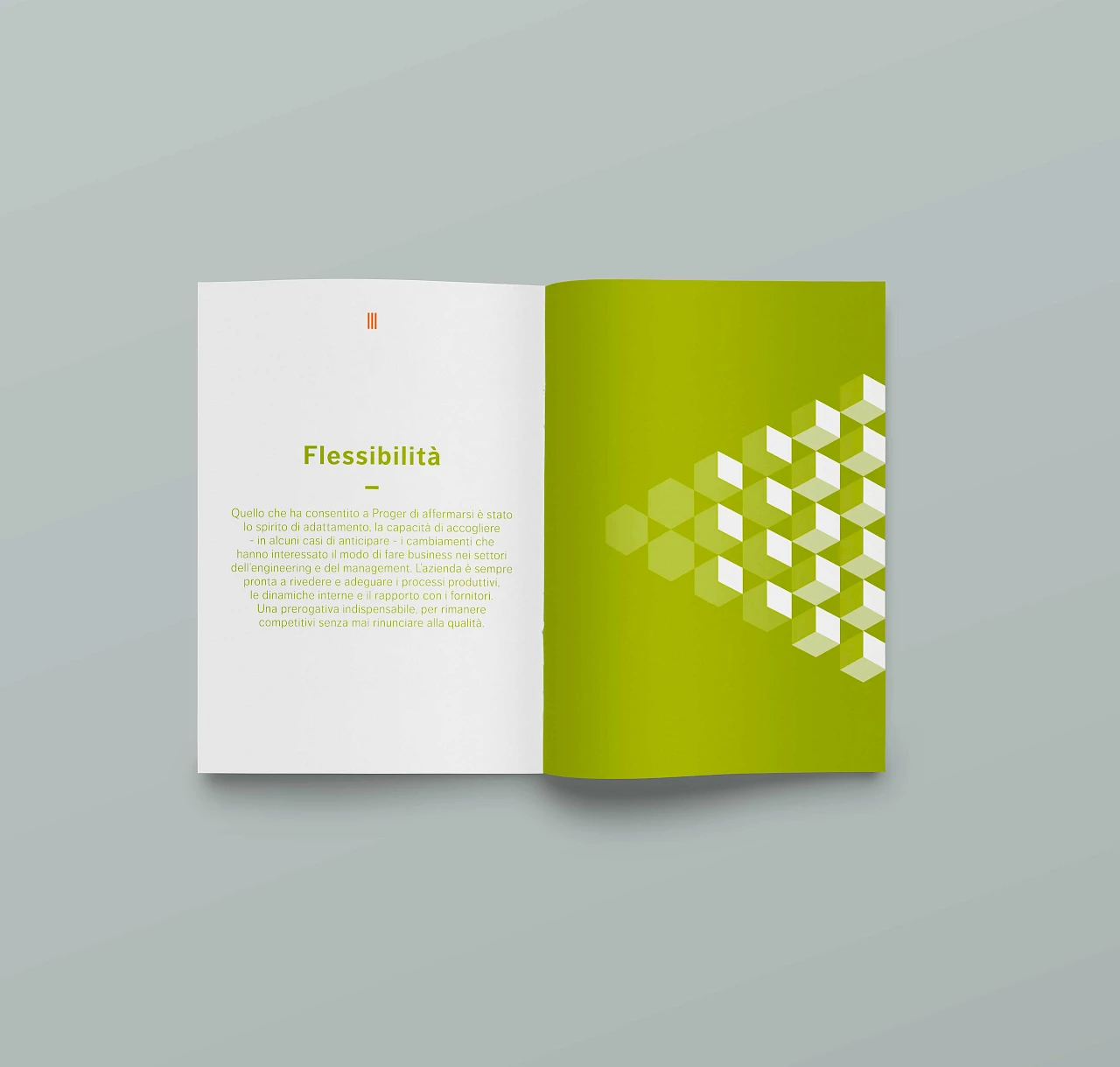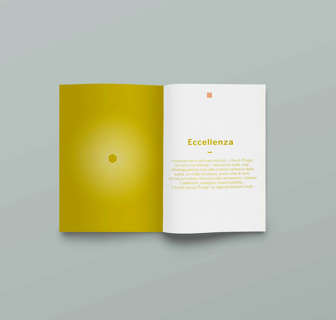 Less Even in the Company Profile brochure we wanted to maintain a dynamic approach, however capable of giving a sense of stability and security.