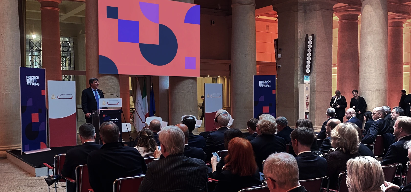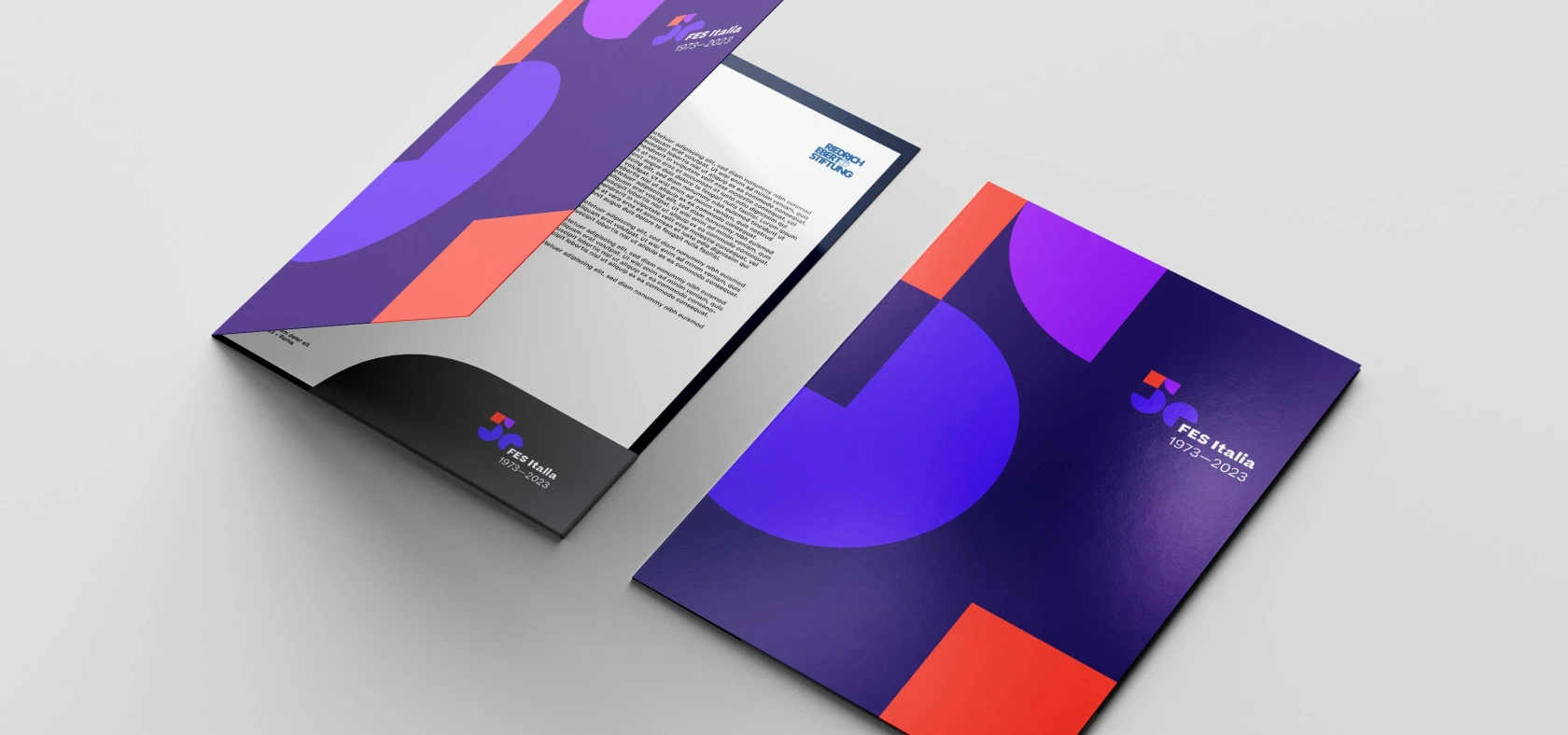 The Friedrich Ebert Foundation in Italy has been promoting the Italian-German dialogue since 1973. For its 50 years in Italy, FES organized a celebratory event by entrusting us with the design of all the communication tools (event logo, invitation, video, installations).