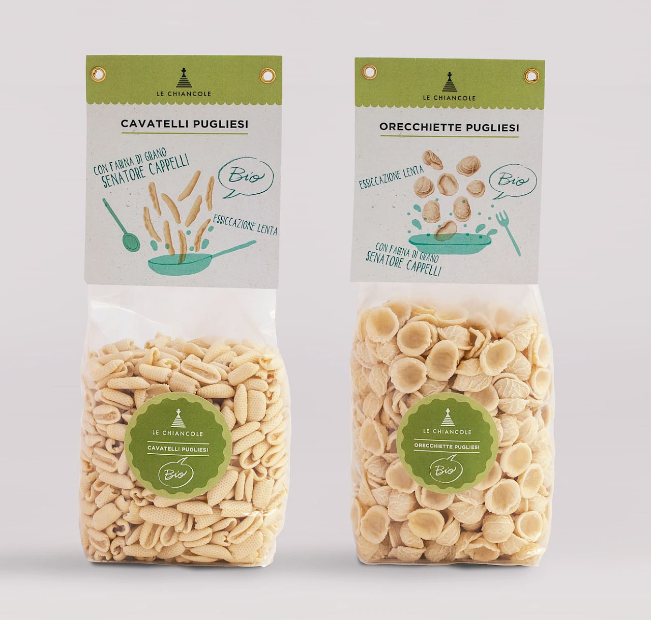 The new Le Chiancole products are distinguished by the very high quality and their origin: they are all grown, prepared and packaged in the Apulian territory. The "where" and "how" thus become focal points in order to develop the packaging of the five different lines that make up the new range.